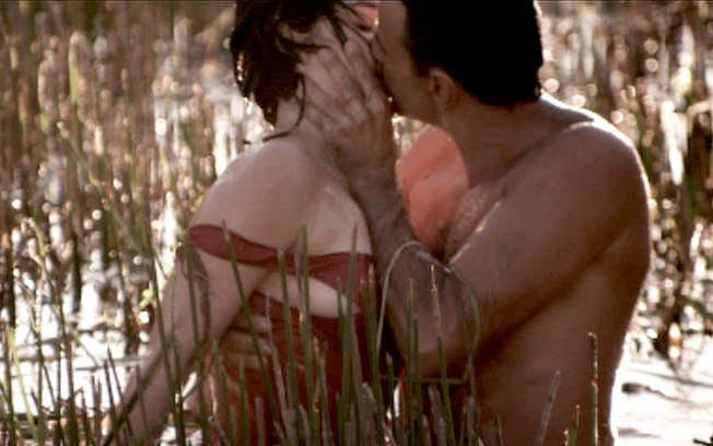 ‘Exilados do Vulcão’ tem como premissa uma mulher (Clara Choveaux) que descobre em meio a um incêndio provocado pelo homem que amava (Vincenzo Amato) fotos e um diário escrito a mão por ele. São pistas, signos isolados deixados por esse homem. E é a partir desse material fragmentado e de suas próprias recordações que ela irá percorrer uma jornada para tentar reconstruir o que ele viveu, com quem se relacionou, os lugares onde esteve. Inicia-se um processo de reconstrução do homem amado a partir de fragmentos, de memórias, de imagens, de textos. Ao tentar identificar quem era seu objeto amado, a mulher empreende uma busca também por si própria e como as arestas da relação entre os dois deixaram dúvidas ao mesmo tempo em que a ausência dele provoca dores, angústia e um vazio dentro da personagem de Clara Choveaux. A jornada dela será conduzida muito mais por aquilo que ela imagina e projeta sobre as pistas deixadas por ele do que por fatos concretos. Rostos em fotografias, passagens escritas a mão, nada traz certezas, não contam nada, apenas abrem possibilidades de leitura de uma mente, de um homem fragmentado, angustiado e vítima de uma doença grave. Paula acerta em cheio ao fundir os tempos da narrativa. Vemos Clara Choveaux presente fisicamente em cenas que ela imagina que aconteceram, a vemos observando o homem desaparecido em momentos que ela recria como se fossem passagens vividas por ele, ela o vê em encontros com outras mulheres, sozinho em meio ao campo, se deslocando por espaços amplos, interagindo com homens e mulheres que não sabemos quem são. É um filme abarrotado de espectros, são presenças fantasmáticas, mas que surgem em carne e osso e que vemos na tela se relacionando das mais diferentes maneiras tanto com Vincenzo Amato quanto com Clara. Ao mesmo tempo, a mulher lembra os momentos em que viveram juntos, eles se amando, se atraindo, se seduzindo, se confortando e se afastando.