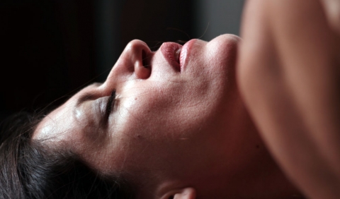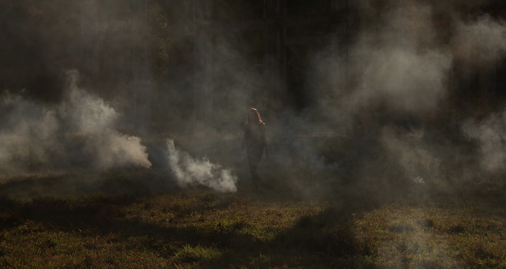 O silêncio dos personagens é constante, eles falam por meio de suas presenças físicas, gestos, ações e, principalmente, por meio de suas expressões faciais. ‘Exilados do Vulcão’ é um filme de estudo do rosto, da geografia desses rostos, sem deixar de ser um longa de observação constante dos espaços e da relção desses espaços com os personagens. Se o rosto é uma paisagem como disse Godard, é nessa paisagem que Paula Gaitán vai buscar as sensações, as essências e os conflitos internos e externos de seus personagens. Mas o filme sabiamente intercala a presença forte desses rostos (que surgem diversas vezes ao longo do filme em belíssimos closes) com planos abertos, paisagens amplas, planos fechados de detalhes de objetos, de ambientes e de parte de corpos – muitas vezes nus. São esses espaços que são constantemente invadidos e ocupados pelos personagens, por seus gestos e suas prostrações, por aquilo que trazem de significante e incerto em suas faces. A fotografia é fundamental para consolidação da potência dos planos. Paula varia entre cenas escuras, luzes direcionadas a pedaços do quadro ou projetadas nos corpos dos personagens, sequências onde cores fortes como o vermelho e o azul preenchem todo o quadro com passagens em que a luz natural se impõe. Mas o que mais chama atenção é a presença do branco. Um branco que constantemente surge na tela e toma conta de todo o espaço, um branco que serve para criar imagens difusas, para provocar desfocamentos, para dar tons de abstração às imagens, para retirar a nitidez daquilo que estamos vendo.
