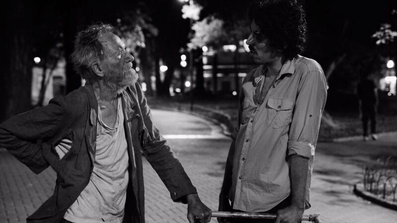 FomeAs poucas cenas em o protagonista interage e conversa com outros personagens reforçam aquilo que as imagens já nos dizem sobre ele, ao mesmo tempo em que servem para ampliar suas texturas e tornar mais rica sua subjetividade. Jean-Claude Bernardet é mais do que ator no filme. Em uma interpretação notável, é o próprio Bernardet intelectual, crítico, escritor, professor e pesquisador de cinema, um dos maiores pensadores de cinema do país que se desdobra em personagem de ficção. Sabemos que Jean-Claude abandonou o meio acadêmico e as críticas para se tornar ator, mas ele deixou um legado imenso que é referência para qualquer um que queira entender e pensar o cinema no Brasil e no mundo. Seu personagem em ‘Fome’ é ele mesmo na vida real desdobrado em uma persona ficcional. A sequência em que ele encontra, durante uma noite na Praça da República, um ex-aluno que reconhece no mendigo seu antigo professor é um dos pontos altos do filme. Não por acaso quem interpreta o aluno é o crítico, pesquisador, curador, roteirista e agora ator Francis Vogner dos Reis. Na cena, os dois discutem e o ex-aluno detona o antigo professor. Existe um choque entre eles, tanto geracional, quanto intelectual. Suas visões sobre o cinema, sobre o papel do intelectual diante do estudo e interpretação da arte refletem a angústia do próprio pensar cinema no Brasil hoje, as tensões presentes entre o fazer e o pensar os filmes. Cristiano Burlan, o cineasta, entra como o terceiro personagem na cena e coloca seu cinema, seu papel de realizador como parte extracampo da discussão entre Bernardet e Francis.