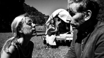 São inúmeras essas sequências marcantes, desde o plano sequência que abre o filme – quando vemos, em profundidade de campo, as duas irmãs e a mãe empurrando com grande dificuldade uma carroça – o que restou da trupe teatral – por uma estrada de terra, tudo filmado em um plano longo, vertical em que a câmera, de início fixa aguardando a chegada das personagens e da carroça no primeiro plano, passa a segui-las em recuos, travellings laterais e frontais –, passando pela cena em que o soldadinho brasileiro encontra o espectro de um militar paraguaio que ele matou em combate (Chico Diaz em uma poderosa participação especial) e é confrontado por este (que por meio de um discurso cheio de referências históricas, crenças libertárias no poder de autodeterminação do povo latino-americano, conceitos metafísicos, filosóficos, existenciais e libertários expõe toda a ignorância e a pequenez do pensamento raso e militarizado do brasileiro) e segue-se nas sequências em que se sobressai a duração das ações, permeadas constantemente pelo texto falado e a movimentação constante da câmera e dos personagens no interior do quadro e intercaladas a planos estáticos (sempre valorizando a encenação em profundidade de campo) até os planos finais, em que a violência que se mantém latente durante todo o filme até aqui se manifesta, vem à tona, explode e toma conta da superfície da tela de maneira crua, bruta e abjeta.